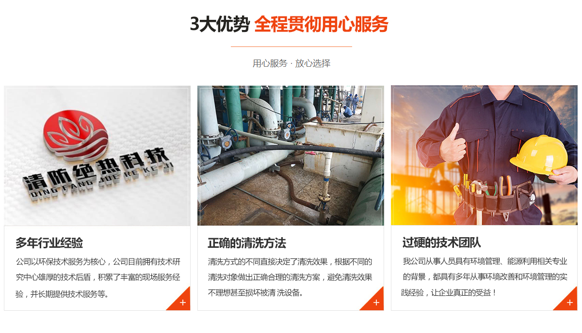 專業(yè)從事化學(xué)清洗、物理清洗各種型號(hào)換熱器、鍋爐、管線、維修,污水處理設(shè)施的修復(fù)、管理、經(jīng)營(yíng)、技術(shù)咨詢及配套服務(wù);環(huán)境技術(shù)開(kāi)發(fā);防腐、保溫等領(lǐng)域的工程施工、技術(shù)咨詢等;目前主要合作單位以煤化工、發(fā)電廠、治煉廠為主;公司目前擁有技術(shù)研究中心雄厚的技術(shù)后盾,積累了豐富的現(xiàn)場(chǎng)服務(wù)經(jīng)驗(yàn),并長(zhǎng)期提供技術(shù)服務(wù)等。